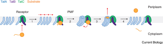 Tat系统用于转运蛋白质,与Sec有些类似;然而,Tat系统转运蛋白质时,不需要蛋白质解折叠。Tat的许多底物都是结合有辅因子的氧化还原蛋白,这种不需要解折叠的性质可能有助于这些底物保持与辅因子的结合。然而,也有很多底物不含有辅因子。