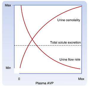 下文将讨论肾脏排泄低渗(稀释)或高渗(浓缩)尿液的机制,并阐述精氨酸加压素(arginine vasopressin, AVP)分泌的调控及其在调节肾脏排水功能中的核心作用(另见第41章)。