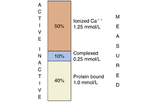 血浆 [Ca++] 的变化也调节尿中 Ca++ 的排泄,高钙血症增加排泄,低钙血症减少排泄。高钙血症通过以下方式增加尿中 Ca++ 的排泄:(1)减少近端小管对 Ca++ 的重吸收(由于间质液 [Ca++] 增加导致旁细胞重吸收减少);(2)通过激活位于这些细胞基底外侧膜的 CaSR 抑制 Henle 袢 TAL 对 Ca++ 的重吸收(Na+ 重吸收减少,从而降低管腔正电位的幅度);(3)通过降低 PTH 水平抑制 DT 对 Ca++ 的重吸收。因此,尿中 Ca++ 的排泄增加。低钙血症对尿中 Ca++ 的排泄有相反的影响,主要是通过增加近端小管和 TAL 对 Ca++ 的重吸收。Calcitriol 增强 DT 对 Ca++ 的重吸收,但其效果不如 PTH。
