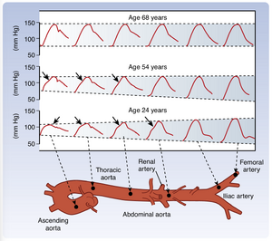 当血管口径变化时,血管阻力会发生改变。导致血管口径变化的最重要因素是血管壁中环形平滑肌细胞的收缩。内部压力的变化也会改变血管口径,从而改变通过这些血管的血流阻力。血管是弹性管道。因此,跨血管壁的跨壁压(即内外压力差)越大,血管的口径越大,其液压阻力(hydraulic resistance)越小。