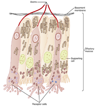 气味比味觉具有更多的基本性质。人类基因组中编码了多达1000种不同的气味受体(odor receptors),尽管其中仅约350种具有功能活性,但它们构成了基因组中最大的G蛋白偶联受体家族。嗅黏膜还含有三叉神经的体感受体。在进行嗅觉临床测试时,临床医生必须避免使用热刺激或有害刺激(如"嗅盐"中的氨)激活这些体感受体。