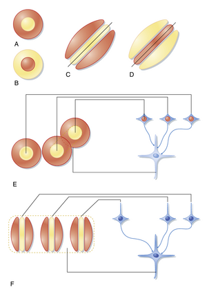 眼球的若干功能受肌肉控制。附着于外部的眼外肌负责将眼球对准视觉目标(见第9章),这些肌肉由动眼神经(第Ⅲ对脑神经)、滑车神经(第Ⅳ对脑神经)和外展神经(第Ⅵ对脑神经)支配。眼球内部也存在肌肉(眼内肌):睫状体中的肌肉通过调节晶状体形状来控制视网膜成像的聚焦;虹膜中的瞳孔开大肌和括约肌则通过类似相机光圈的方式控制入射光量。开大肌由交感神经系统激活,而括约肌和睫状肌由副交感神经系统控制(通过动眼神经;见第11章)。