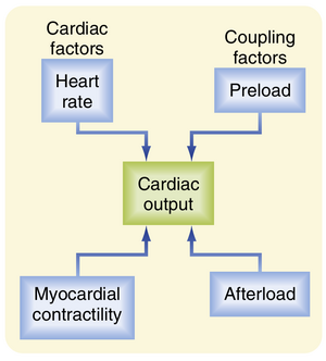 [[文件:BL-19.1.png|缩略图|  • 图19.1  决定心输出量的四个因素(蓝色方框内)。]]