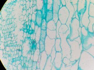 在北大的植物学实验中,居然真的见到了“向日葵的凯氏带”,仔细看的话确实有一圈真真切切的类似凯氏点的结构。然而,不知道这里凯氏带的生理意义是什么,甚至也不敢确定这东西是真正意义上的凯氏带。