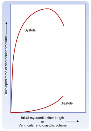 - 心室收缩中,前负荷(preload)是心室充盈时血液对纤维的牵张。后负荷(afterload)是心室射血时面对的动脉压力。心肌纤维长度的增加(如舒张期心室充盈量增加导致前负荷增大)会产生更强力的心室收缩,此现象称为心脏Frank-Starling定律。