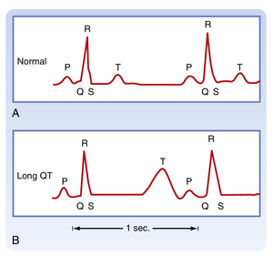 血清[K+]的变化可对心脏动作电位和心脏电特性产生显著影响。例如,血清[K+]升高(高钾血症)会使静息膜电位去极化,而血清[K+]降低(低钾血症)可使静息膜电位超极化(见图16.10)。这些反应可通过改变细胞外K+浓度对EK的影响来简单解释。但若仅考虑EK的变化,血清[K+]的改变对动作电位时程会产生看似矛盾的影响。需注意,弦电导方程指出膜电位是膜对离子电导度及其平衡电位的函数。事实上,细胞外[K+]的变化也会影响与延迟整流和内向整流K+通道相关的膜K+电导度:增加细胞外[K+]会升高gK,降低细胞外[K+]则减少gK。gK的变化对动作电位时程的影响比EK的变化更大。因此,高钾血症缩短动作电位时程,而低钾血症延长动作电位时程。