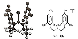 β-二酮亚胺[{N(SiMe3)C(Ph)}2CH]-是一个nacnac类配体,它的螯合强制主族金属Tl(I)形成二配位非直线型几何结构。其二齿螯合加强了该配合物的稳定性,其刚性配体为主导因素。
