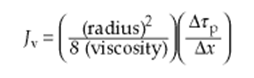 可以使用Poiseuille方程的一个形式(参见教科书公式6.2)来估算以该速度(4 × 10⁻³ 米/秒)通过半径为40 µm的管道所需压力梯度(ΔΨp/Δx)。将教科书公式6.2除以木质部导管的横截面积(πr²),我们发现运输速率(Jv,单位米/秒)由以下公式给出: