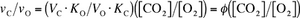 其中 Kc:CO2的米氏常数;Ko:O2的米氏常数;Vc:羧化最大反应速度;Vo:氧化最大反应速度。