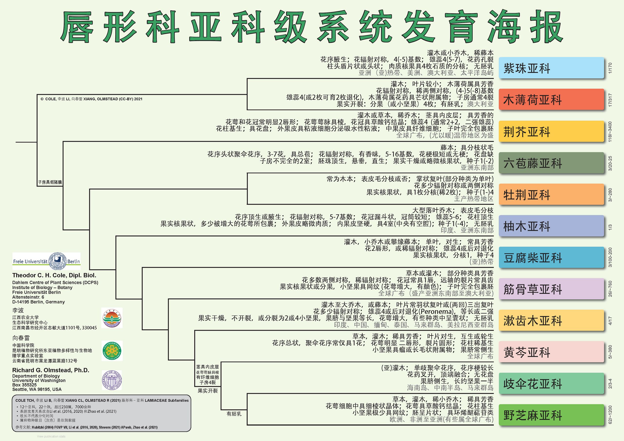 Cole, Theodor & Li, Bo & Xiang, Chun-Lei & Olmstead, Richard. (2021). 唇形科–亚科 LAMIACEAE Subfamilies (CN version).