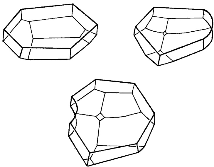 Aloe aristata (百合科)叶表皮细胞的三维结构。每张图中的上表面是细胞的外表面。相反的一侧是与下方叶肉细胞接触的面。(来自Esau, 1977; 重绘自Matzke, 1947。)